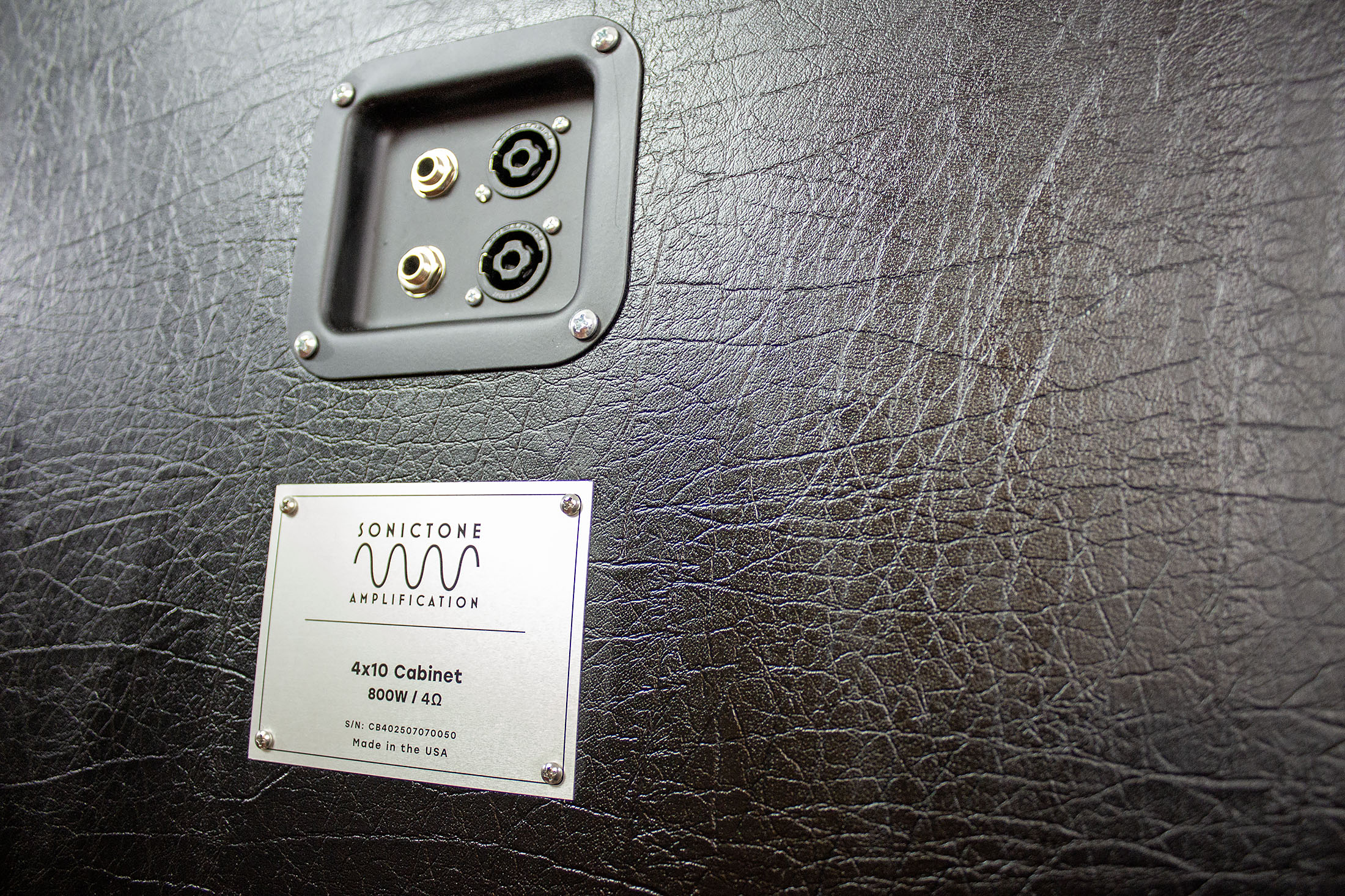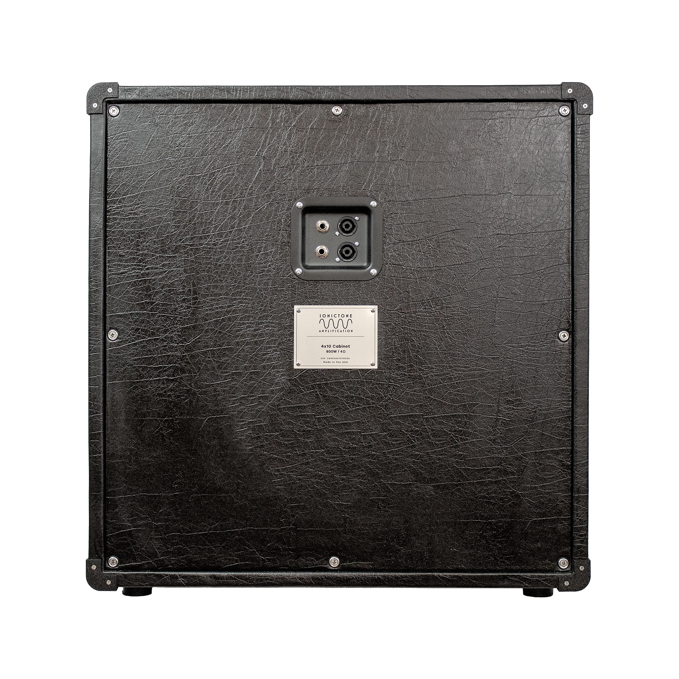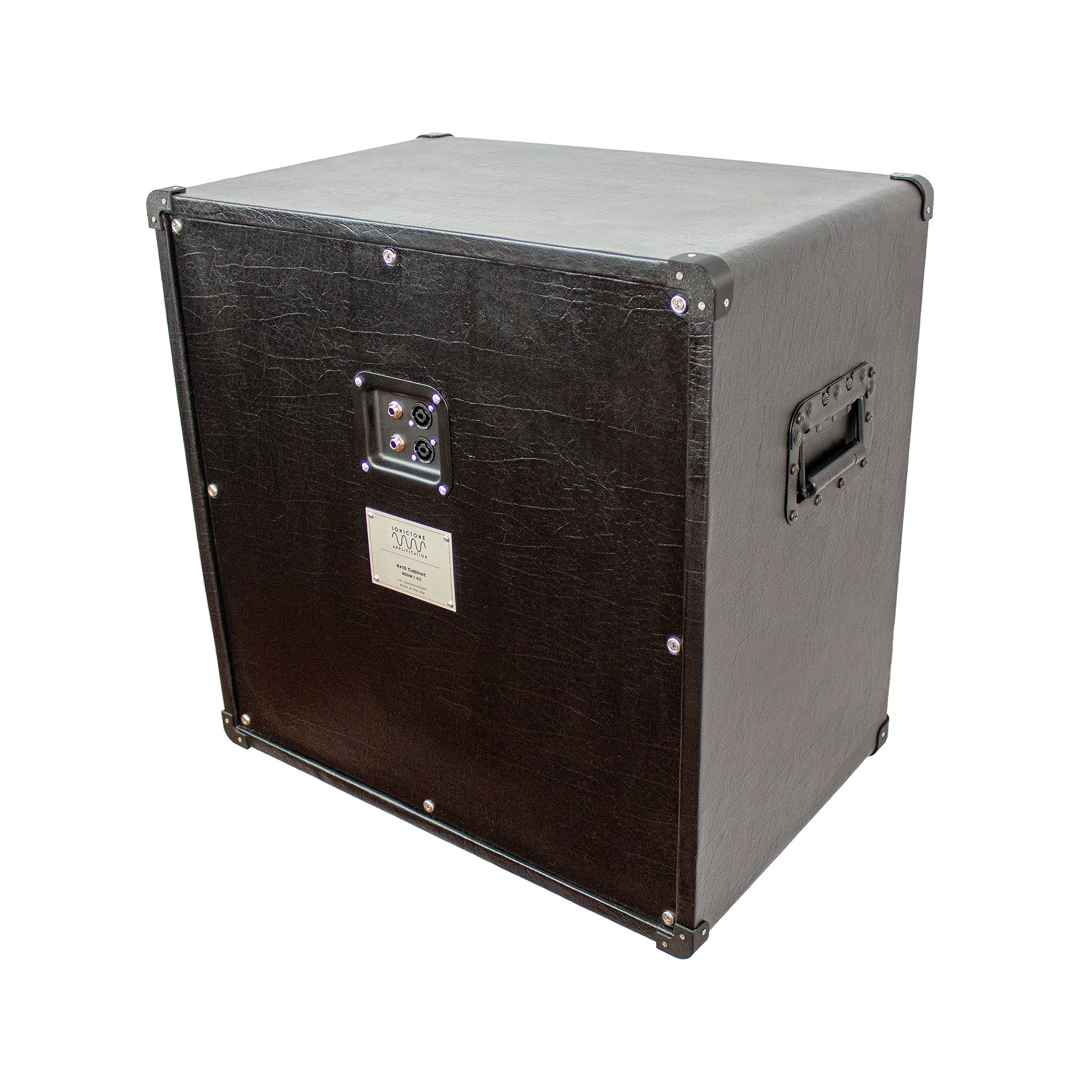 The SonicTone 4x10 speaker cabinet is unique in that it is available as a bass cabinet or a guitar cabinet. The bass cabinet version has a little more depth at 16" for a better bass response. The guitar version is 12" in depth for a tighter sound suited for guitar. If you need a big, but tight sound on the stage or in the studio, these cabinets will get you there. These cabinets will fit most SonicTone "smallbox" heads and the BA heads, which are 24" in width.